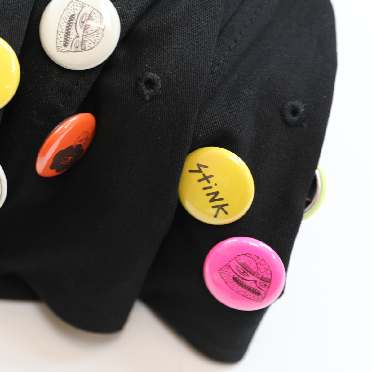 “Stink” hat in black with front embroidered Hairy Fool graphic.